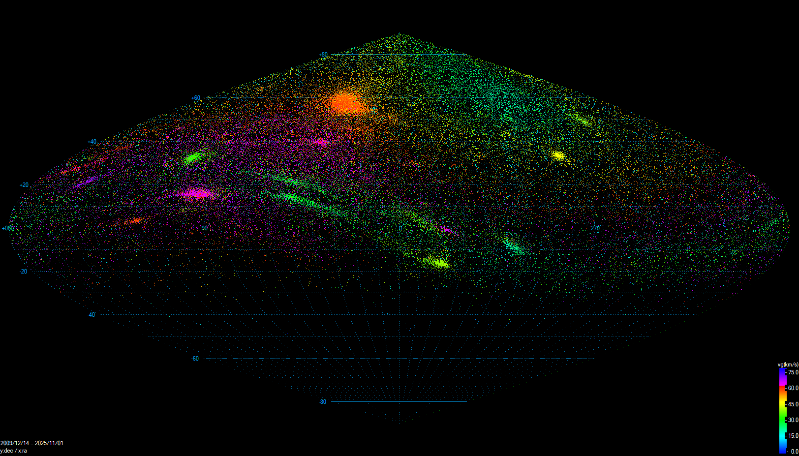 The Alpha Capricornid meteor shower (IAU MDC 0001 CAP) is known for its frequent occurrence of very bright fireballs. The parent body of this meteor shower is comet 169P/NEAT, which orbits on a relatively eccentric path with a low inclination. The activity period of the meteor shower begins in early July and ends in mid-August. The meteor shower usually peaks on July 29 or 30, with a typical hourly rate of 10 meteors.