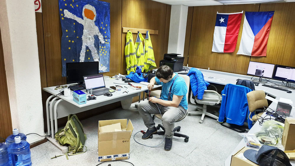 The beautiful Andes welcomed them at the observatory. But the observatory's high altitude (2,400 m) also brought acclimatisation problems. " After arriving at the observatory, nothing suggested we would have any problem. We were cured of this by the first 'climb' to the control room of the E152 telescope, which is on the third floor. The telescope, on whose building we installed our equipment, is located in the highest building in the complex, and since all the equipment was stacked on the ground floor of the building, we climbed the stairs dozens of times. The elevation gain between the dining hall (and accommodation) and the telescope is also not negligible (about 50 m), so it was not uncommon for us to have to set up an altitude camp on some floor and stabilise our heart and breathing rate during the 'climb' to the E152 telescope. It was not uncommon for one of us to burst into the control room like after a marathon and collapse into an armchair, still catching our breath for several dozen seconds after this 'athletic' performance, " explains Jakub Koukal.