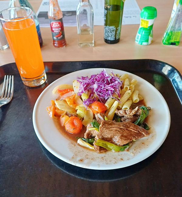 After this adventurous trip by one team member, everyone stayed at La Silla. Their stay there was made pleasant by excellent cuisine, which has the best reputation for a reason. It is known to be much better than the kitchen at the neighbouring Las Campanas Observatory. " Breakfast was served as a buffet. The kitchen prepared scrambled eggs (huevos revueltos) or fried eggs (huevo frito) to order, in the desired quantity. Interestingly, most of the pastries were sweet, except for toast bread. For lunch, there was usually a choice of 5 to 6 dishes, including vegetarian options. Fresh fish (e.g. salmon) was a matter of course. The kitchen was adapted enough for Europeans, so we experienced a classic South American steak only twice. Dinner offered a similar menu, with fewer dishes (usually 2-3). Dinner remained available for night observers, so it was possible to stop for a second dinner even around midnight. A bonus for lunches and dinners was a wide selection of desserts, mostly prepared on site, " Jakub describes.