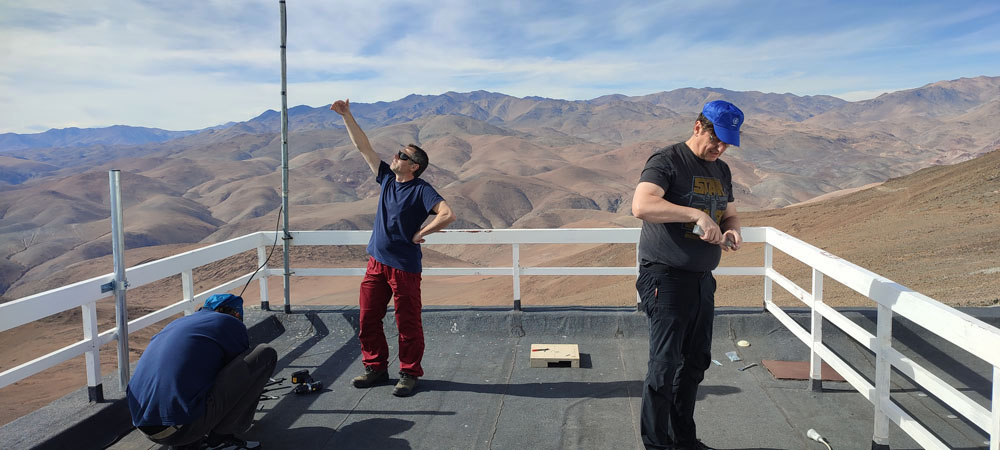 On 5 June, the team embarked on a demanding seven-hour journey through Chilean wilderness to the El Sauce ObsTech Observatory, where they installed another part of the system over two days. The trip there was somewhat more difficult: ...A chapter of its own is the I-595 state road, which we turned onto on the way to El Sauce after the village of El Puerto. This road without a paved surface, with lots of bends and unpleasant climbs and descents, tested both the crew's skills and the capabilities of our Subaru CrossTrek. And that included crossing paths with a truck or a herd of cows, " Jakub explained to us. But the very presence at Obstech was a pleasant change for the team compared to La Silla. " At La Silla, it is practically always windy, whereas the El Sauce Observatory, thanks to its location inside a mountain ridge, is usually very calm and throughout our stay the wind at night did not exceed 3 m/s. At La Silla, on the other hand, gusts over 15 m/s are common and the normal wind speed is between 5 and 10 m/s. "